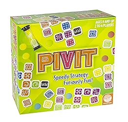 GAMES THAT TEACH: Pivit from MindWare is a perfect game to sharpen player’s tactical maneuvers, strategical planning and forward thinking. SPEEDY STRATEGY: The race is on to connect all your tiles before your opponent! Use a trade token to swap a tricky tile and hope for a Wild tile in return. Whatever your hand, you will need to switch, shuffle and “pivit” your tiles to place them all and claim the highest scoring stick. EASY-TO-FOLLOW RULES: An engaging game with easy-to-follow rules, Pivit is the perfect fit for kids and adults. The rules of this game are basic: be the first to properly arrange your 24 tiles crossword style by matching color and design. The key is that every tile must connect and a row of two just won’t do. FAMILY FAVORITE: Pivit is a fantastic game for families, as it can involve a wide range of ages from children to adults. It only takes a few moments to explain, so new players such as extended family or your child’s play dates can jump right in and play. INCLUDES: 114 tiles, 3 scoring sticks, 8 trade tokens, timer and rules.