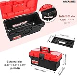 14-inch Toolbox, Internal size 12.99" x 5.51(Lx H), External size 14.17" x 6.3" x 7.09" (L x W x H), around 2 pound Small handheld tool box good for the car and household, lightweight for carrying Made of Rugged polypropylene resin construction, empty plastic tool box with removable trays, fit to storage small wrenches, sockets,screwdrivers Red tool box with lock hole, and transparent small-parts organizer on either side, to store small screw, nut etc (LOCK NOT INCLUDE) MAXPOWER tool box is great choice as gifts for women, men and kids, orangized the hand tools, compact size for easy storage