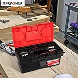 MAXPOWER Small Tool Box, 14-inch Plastic Tool Boxes with Handle, Removable Tray with Dual Lock Secured, Red Toolbox for Home