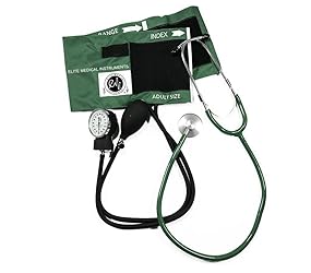 DELUXE BLOOD PRESSURE CUFF: Regular Adult Size Blood Pressure Cuff 25 to 40 cm STETHOSCOPE: Basic Single Head Stethoscope BRAND: Elite Medical Instruments CARRYING CASE: Includes carrying case for blood pressure and stethoscope