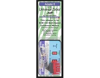 • Adapter E is used with the UZ-1 Universal Zebra Tool to troubleshoot these ECM motors:• GE, Regal-Beloit, and GENTEQ Series 2.0 ECM Motors GE, Regal-Beloit, and GENTEQ ECM 142 Series Motors (signal-controlled ECM condenser fan motors) The Adapter simply plugs in to the end of the Universal Zebra's harness, and then to the motor. A Magnetic Overlay Card is included that explains what functions the UZ-1's switches and LEDs perform for this specific series of ECM motor. The Universal Zebra System features Free Online Training for each component. Crystal-Clear Clamshell Package with Hanging Hole Full-Color Insert with Instructions Package Weight: 2 oz. each Standard Carton: 12 Pieces UPC Barcoded - 7 68467 40115 9