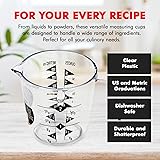 Clear plastic for durability and ease of measuring Both US and metric graduations to suit any recipe Easy to read gradations Can be used to measure liquids or powders Dishwasher safe