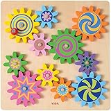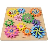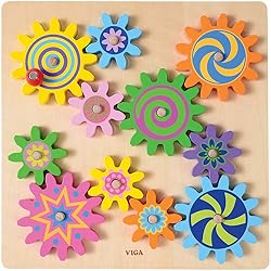 Constructive Playthings Interchangeable Spinning Gears with Fixed Axles On A 11 3/4" Sq. Wooden Base for Ages 18 Months and Up