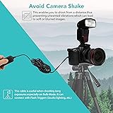• Whether you are shooting in the studio or outdoors, the Foto&Tech Wired Remote Switch for Cameras with Sub-Mini Connection provides you with a simple way to control exposures and an easy-to use-tool to create more "keepers". The unit provides functionality such as: autofocusing, close-ups (macro) or continuous shooting, or single image capture and long time exposures. Since you can trigger exposures without touching the camera you will capture clear, blur-free images. The unit requires no batteries - it is powered by the camera. The Wired Remote Switch is a huge asset to keep in your studio or gear bag. This particular wired switch uses a cable that's 110cm long, and is compatible with cameras that use the Sub-Mini Connection. Two-Stage Shutter Release Button Press the button half-way to autofocus. Press the button fully to trigger the shutter. Press the button and slide it forward to lock for long exposures. Larger, more comfortable form factor. Package includes: 1x Remote Switch with 110cm long camera connection cord Compatible Cameras: EOS Rebel Series DSLR cameras: Rebel T7i T7 T6i T6S T6 T5 T5i T4i T3i T3 T2i T1i XT XTi XSi SL3 SL2 SL1, 800D 760D 750D 700D 650D 600D 550D 500D 450D 400D 350D 250D 200D 100D 1000D 1100D 1200D 1300D 1500D, 60D 60Da 70D 77D 80D 90D Mirrorless Cameras: EOS RP, R, M, M6, M6 Mark II, M5 Powershot: G16 G15 G12 G11 G10 G1X/G1X Mark II/G1X Mark III/G3X/G5X SX50 HS/SX60 HS/SX70 HS Pentax cameras: K1/K3/K3 II/K5/K5 II/K5 IIs/K7/K30/K50 K10D/K20D/K100D/K100D Super/K110D/K200D/K500/645D/645Z ist/ist D/ist DL/ist DL2/ist Ds/ist DS2/MZ-6/MZ-L/ZX-L Samsung cameras: GX-1L/GX-1S/GX-10/GX-20/NX10/NX100/NX5 Specifications: Total length: 110cm Product Weight: 2 oz ¬¬