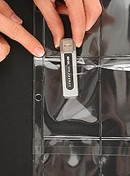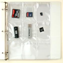 - How many times have you unthinkingly tossed a flash drive onto your desk, into your bag, or into your vehicle's cup holder? (Bonus points if it was missing its cap.) Too many times, we're guessing! We tend to treat flash drives roughly, when our precious data demands loving care. Instead of exposing your flash drives to dust, dirt, and the elements, store and protect them with StoreSMART's 9-Pocket Clear Vinyl Binder Pages. Each page is compatible with three-ring binders, and contains nine 2 1/2" x 3 1/2" pockets with weatherproof flaps. Organize your flash drives, SD cards, CompactFlash cards, and adapters and cases with ease, and stop worrying about the potential loss of your files! Note: Drive not included. Looking for more storage options? Try our USB Flash Drive Zip Case (R1831-FLASH). Product Features: Crafted of crystal clear 6-gauge vinyl. Nine pockets per page, with weatherproof flaps. Includes holes for use with three-ring binders. Overall size: 8 11/16" x 11 9/16". Inside capacity (of each pocket): 2 5/8" x 3 7/16". Great for use with flash drives, SD cards (all sizes), CompactFlash cards, adapters and cases. Proudly manufactured in the USA. Suggestions for Use: Students: Need to give a presentation? Working on an important paper? Keep your PowerPoint presentation or research drives in your subject binder. Businesses: Back up your important files and organize them in storage binders. Photographers: Keep copies of your important photography files in a safe deposit box, or somewhere else secure.