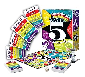 - Can you name 5 things that could make a person sneeze in 30 seconds? How about 5 TV dads or 5 video games? Fruits or vegetables beginning with “a”? Name 5 is the outrageous party game that asks the easy questions you know the answers to. Sure, you know 1 movie starring America’s sweetheart or a certain Hollywood heartthrob…maybe even 2…but can you Name 5? Contents: 144 Name 5 Cards, 1 Game Board, 1 Die, 4 Pawns, 1 30-Second Timer, Complete Instructions. For 2 or more players or 2 teams, ages 12 and up.