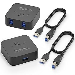Effortless USB Sharing: This USB 3.0 sharing switch allows simple one-touch control to switch USB peripherals - like flash drives, printers, and hubs between two computers, perfect for a USB switch setup. Compatibility: Works with USB 3.0, 2.0, or 1.1 devices like USB 3.0 docks, keyboard, mouse, printer, etc. Not compatible with USB-C/Thunderbolt docks. Use the included 1m cables and keep peripherals within 1.8m for optimal performance. One Button Toggle: Connect your USB docking station, keyboard, and mouse via this USB switch to enable an all USB KVM switch setup - ideal for streamlined workflows. Plug and Play: Instantly switch two laptops to one USB device without installing drivers. LED indicators show active host, making this the perfect USB 3 switch for home or office use. Boost Productivity & Efficiency: Streamline your workflow and enhance productivity by effortlessly sharing multiple USB devices like keyboards, mice, and docking stations, between two computers using a single switch.
