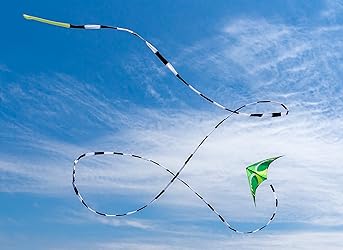 - Our 75-foot and 20-foot Tube Tails are black/white striped with a neon yellow tip for a mesmerizing show in the sky. These modular tails make a great add-on for dual and single-line use. They come in a handy drawstring pouch for easy storage and can be joined end to end for extra pizazz. The 75-footer is the ideal length for all medium to full-sized dual-line kites. The 20 footer is a great as an add-on for single line kites, as "line laundry” to decorate your line, or for small dual-line kites.