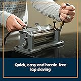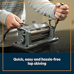 Leather Skiving Machine: Our leather skiver tool helps thin leather edges or a portion of leather down to the right thickness making it ready for any leatherworking project; this leather strap cutter is perfect to use for lap and level skiving Precise Design: Our leather machine is equipped with a 6” precision ground blade that cuts clean, even shavings of leather; the stainless steel hold down bar of this leather stripper helps the leather stay put for precise, consistent level skives Adjustable Style: This leather cutting machine comes with an adjustable stop setup that ensures repeated level skiving; this leather cutter features an adjustable handle that allows you to control the depth of the blade for quick and easy lap skiving Effortless Usage: Ready to use right out of the box, this leather splitter machine requires virtually no setup for offering reliable performance; our economical leather press machine ensures seamless integration into any workspace Versatile Leatherworking Tool: These leather working tools are a must-have for professionals and hobbyists alike; our leather strip cutting tool is perfect for a variety of leather accessories such as belts, bags, wallets, keychains, and more