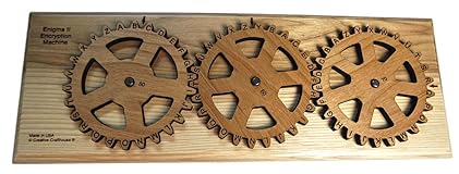 - Can you decode the 8 secret messages we provide? The wheels will guide you if you can figure out the puzzle of how they work. A series of hints and finally full solutions are provided. The machine can be used to encode your own secret messages! Send and receive secret messages to anyone who has a machine. Hardwood construction with gears cut from ¼” thick wood. All letters and text are deeply laser engraved into the wood. The gears turn on alloy steel pins. Made in USA and designed to last a lifetime. Available in 2 different sizes, as shown in last photo above. This listing is for the size large which measures approx. 12.75” x 4.5” x 1”. Each gear is approx. 3.7” in diameter Also available on a different listing is a smaller size made from kauri wood and maple. It measures 9.4” x3.2” x 1”. Each gear is approx. 3.7” in diameter Creative Crafthouse Made in Florida To view a video of the puzzle cut and paste this link: https://www.youtube.com/watch?v=P008o_dtZqs