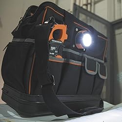 Work light with swivel hook and magnet for hands-free use Tool Bag Light with 3 x AAA batteries included Bright LED light Compatible with Klein Tools' Tradesman Pro Organizer Lighted Tool Bag