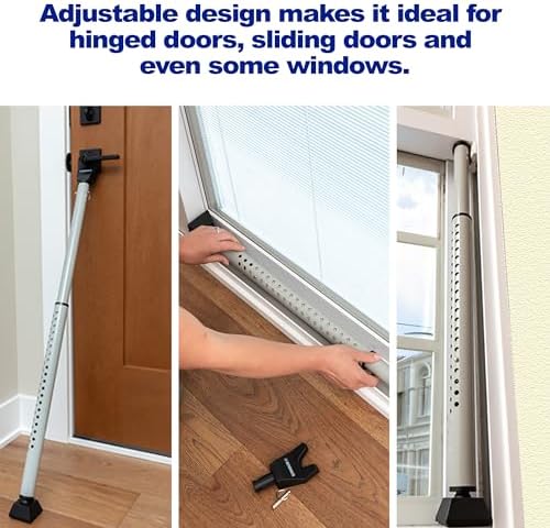 - VERSATILE PROTECTION: This security stick for door adjusts between 25" to 43" to fit a variety of doors, such as apartment door security, home security products, and dorm room use