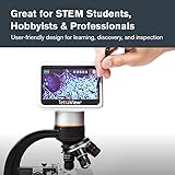 4.3" LCD SCREEN MOUNTED ON 180° ROTATING HEAD: View specimens in vivid detail without eyepieces and easily rotate the screen to share observations in group or classroom settings. 5MP DIGITAL CAMERA WITH VIDEO RECORDING: Capture high-resolution still images and smooth 30 fps video directly to an SD card—ideal for documentation and presentations. MAGNIFICATION UP TO 1600X: Features 4x, 10x, 20x, and 40x objective lenses combined with a 10x digital eyepiece for optical powers of 40x, 100x, 200x, and 400x. Use the 4x digital zoom on the LCD screen to achieve total magnification up to 1600x. ADJUSTABLE MECHANICAL STAGE WITH ILLUMINATION: Easily move and position slides with the precision-controlled mechanical stage, while the bottom LED lighting provides bright, adjustable illumination for optimal viewing. 8 GB SD CARD AND TV OUTPUT INCLUDED: Save images and videos to the included SD card or display on a TV or monitor via AV output for large-scale viewing. DUAL POWER OPTIONS FOR FLEXIBILITY: Operates on 4 AA batteries (not included) for use in the field or plugs into the wall with the included international AC adapter—perfect for home, classroom, or on-the-go exploration. UNBEATABLE WARRANTY & SUPPORT: Buy with confidence from Celestron, a leading telescope brand in California since 1960. Your purchase includes a 2-Year US Warranty and unlimited support from our team of US-based experts.
