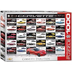 - Strong high-quality puzzle pieces. Made from recycled board and printed with vegetable based ink. Box size: 10 x 14 x 2.37. Finished Puzzle Size: 19.25 x 26.5. 1000-Piece Puzzle. Sports car enthusiast can enjoy a nostalgic view of the Corvette starting with the First Generation C1 that was introduced by General Motors in 1953 on up until the seventh generation c7 that was introduced in 2013.