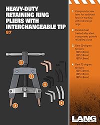 - Made in the USA, Lang Tools (87) Heavy-Duty Pliers with Tip Kit provides you with safe and stable service of extra-large retaining rings. A compound screw lever allows for easy ring installation and removal. The durable, heat treated, alloy steel components provide reliability of use not available with other tools for serving this range of rings.