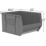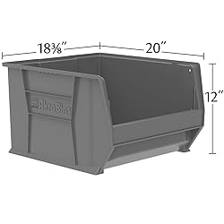 STORAGE BINS FOR BULKY ITEMS: Super-Size AkroBins storage bins hold up to 300 pounds and are great for closet organization, classrooms, garage storage, pantries, warehouses, pantries, and more; Use them for sports equipment, garden tools, or pet food DURABLE ORGANIZATION: Crafted from heavy-duty, one-piece industrial plastic, these bins are rust, water, and corrosion-proof; Reinforced side ribs add strength and prevent spreading; Organize and protect large or bulky items like paint cans or hoses SPACE-SAVING DESIGN: These stackable plastic bins maximize vertical storage and are great for garage organization; Extra-wide stacking ledge provides stability, saves space and prevents spills; Anti-slide stop prevents stacked bins from shifting forward CUSTOMIZABLE ORGANIZATION: Optional dividers (model # 40282) and label holders (sold separately) let you tailor the heavy duty storage bins to your needs; Use the bins with cabinets or shelving (sold separately) to free up floor space STACKING BIN DIMENSIONS: Outside Dimensions - 20" x 12-3/8" x 12"; Inside Dimensions - 16-7/8" x 16-9/16" x 11-3/8" Wide front provides easy access to parts and products; Proudly made in the USA; Each storage bin is easy-to-clean and can be used indoors or outdoors