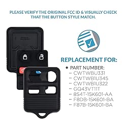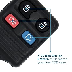 PROTECT YOUR VALUABLE INNER HARDWARE CIRCUIT CAR KEY: Keep your key electronic circuit hardware protected and maintained. The electronic hardware will thank you for this in the long run. This key FOB shell case protects the valuable electronics on the inside from dirt, dust, moisture, anti scratch and other hazards. DURABLE SHELL AND RELIABLE: Full Cover Protection, prevent breakage of inner circuits for long lasting use! This quality designed key shell is durable and is able to withstand wear, pressure, or damage. This car key fob case will replace your old and broken key fob for a fraction of dealership prices. Comes with plastic shell and rubber button pad - electronic hardware not included. FITMENT: This Key Frequency Operated Button Case is fitted for FORD, LINCOLN and MERCURY vehicles. For full complete list, please check our product description. Part Numbers Include -CWTWBU331, CWTWB1U345, CWTWB1U322, GQ43VT11T, 8S4T-15K601-AA, F8DB-15K601-BA, F87B-15K601-BA. 4 Button Design Pattern must match your Key FOB case. QUICK & EASY INSTALLATION: This remote shell is engineered for an easy snap on installation for your keyless entry fob device. For any additional support, we have the best reliable tech support on standby for any questions in regards to your purchase. "Add-to-cart" to buy it now while supplies last! MAKES THE PERFECT THOUGHTFUL GIFT FOR HIM & HER FOR ALL CAR ENTHUSIASTS: For men, for him, for her, friends, boyfriend, father. Across occasions: new car, travel, promotion. Obtain for Father's Day, Mother's Day, Veteran’s, Christmas, Thanksgiving, New Year. If the remote does not hold up for any reason, simply contact us for a refund or replacement.