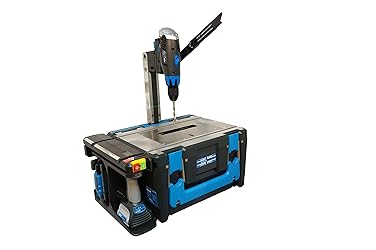 - Incluye 4 herramientas eléctricas; taladro percutor de velocidad variable, sierra circular, sierra de calar y linterna. Cada herramienta se integra con el banco de trabajo para convertirse en una taladradora, una sierra de mesa, una sierra de calar y una lámpara de mesa Por lo tanto, 8 herramientas en un kit.