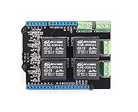 - The Relay Shield utilizes four high quality relays and provides NO/NC interfaces that control the load of high current. Which means it could be a nice solution for controlling devices that couldn¡¯t be directly controlled by Arduino¡¯s Digital I/Os. Standardized shield form factor enables smoothly connection with the Arduino. The shield also has four dynamic indicators show the on/off state of each relay. Features: Arduino/Seeeduino compatible Standardized shape design Working status indicators for each relay High quality relays Provides NO/NC interfaces Specification: CHANNEL1 Interface: COM1- Common pin NC1- Normally Closed. Will be connected with COM1 when RELAY1 pin is set low and disconnected when RELAY1 is high;? NO1- Normally Open. Will be connected with COM1 when RELAY 1 pin is set high and disconnected when RELAY1 is low; 4 Digital Pins to control 4 Relays: RELAY1-RELAY4 pins could be connected directly with Arduino pin number of 7-4, so that four relays could be easily controlled by the Arduino Documents: Please visit our wiki page for more info about this product. It will be appreciated if you can help us improve the documents, add more demo code or tutorials. For technical support, please post your questions to our forum.