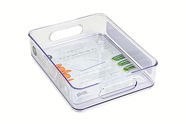 Our refrigerator storage bin is ideal for storing a variety of items, including fruits, vegetables, snacks, beverages, condiments, and more; The sleek and modern design ensures that it will fit seamlessly into any fridge, while the built-in handles make it easy to slide in and out of your fridge shelves Made of a quality acrylonitrile butadiene styrene (ABS) material; BPA free; Our storage bin is designed to withstand daily use and keep your food fresh and easily accessible; The clear design allows you to easily see the contents of the bin, so you can quickly grab what you need without wasting time searching through your fridge Using warm water and mild dish detergent, hand wash and dry Maximize your fridge space and keep it organized