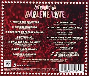 - Legendary vocalist Darlene Love, presents her first new album in decades, titled Introducing Darlene Love. The album is produced and arranged by artist/producer/E Street Band great Stevie Van Zandt, and is comprised of all new recordings and features never-before-heard and classic songs from a superstar cast of songwriters eager to showcase one of the most seminal voices in music history. Elvis Costello and Bruce Springsteen contribute two tracks each to the 14-song album, and Stevie Van Zandt penned three songs. Other writers include Jim Webb, Linda Perry, Desmond Child, Joan Jett, longtime songwriting team Barry Mann and Cynthia Weil, Michael Des Barres, and more. The captivating Love brings her iconic vocal delivery to each song, including "Night Closing In" (Bruce Springsteen,) "Still To Soon To Know" (Elvis Costello),"Love Kept Us Foolin' Around" (Linda Perry), "Who Under Heaven" (Jimmy Webb), "River Deep, Mountain High" (Phil Spector/Jeff Barry/Ellie Greenwich), and "Sweet Freedom" (Barry Man/Cynthia Weil), among others. Inducted in to the Rock And Roll Hall Of Fame in 2011, the New York Times has called the singer "a thunderbolt voice embedded in the history of rock n' roll..." and Rolling Stone praised her trademark vocal style as "a rare instrument sturdy enough to vault over Phil Spector's Wall of Sound.'" The prolific Van Zandt creates a compelling production aesthetic on Introducing Darlene Love, echoing the classic recording style of many early '60s pop standards. Love s five-decade career spans some of the greatest signature moments in music, with the Los Angeles native nurturing her talent early as a member of the Blossoms, a local trio who began their career providing backup vocals for artists such as Sam Cooke and Bobbie Day. The Blossoms also were featured as part of the house band for the popular '60s music show Shindig, backing up many of the performers who appeared on the series. Love would go on to become one of the most sought-after singers in music history, recording with Elvis Presley, Frank Sinatra, The Beach Boys, Dionne Warwick, The Righteous Brothers, Tom Jones, and dozens of other vocal giants throughout her career. Her early work with pioneering producer Phil Spector on songs such as the trailblazing "He's A Rebel," "He's Sure The Boy I Love," and "Why Do Lover's Break Each Other's Hearts," would garner her legend status. She is featured in the 2013 Academy Award and Grammy winning documentary '20 Feet From Stardom,' chronicling the behind-the-scenes lives of background singers. Darlene's annual holiday performance of her classic "Christmas (Baby Please Come Home)" on Late Night With David Letterman became a holiday viewing staple.
