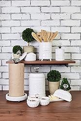 Two piece white ceramic butter storage set comes with dish and coordinating lid. Dish features beaded detailing around edge. Lid features fluted detailing and vintage inspired glass door knob accent. Base measures 3.5x 7; lid measures 4.5x 6.5