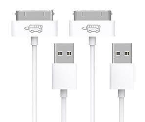iPad iPod Charger Cables for the iPhone 3G/3GS, iPhone 4/4S, iPad 1/2/3, iPod nano 5th/6th generations, and iPod Touch 3rd/4th generations. A PVC jacket and reinforced connectors protect the wire from damage, prolong the cable’s lifespan, prevent tangles, and are highly durable. Top-notch copper wire for fast charging and data syncing, with an oxygen-free copper connector resistant to rust and corrosion. 3.2ft (1 meter) sync data transfer charger cable cord that connects to any device or adaptor with a USB Type A port. 1 Year Warranty