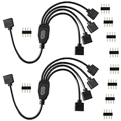 - Connect 4 color changing RGB 5050/3528/2835 LED strips to a single controller with this 4 pin splitter cable. No soldering is required, simply match the arrows on the plug. Features: 1). The insulation plastic of this cord adopts high quality PVC, anticorrosive. 2). This extension cord contains 4 strands of tin-plated pure copper wires inside. Pure copper wires electroplated with tin can prevent oxidation, which ensures flexibility, durability, and a longer service life. 3). The cord and the 4pin plugs fit snug. 4). Easy to plug, reliable connection, excellent performance. Just buy with confidence! Note: A power supply with sufficient power for multiple led strips is required. Package Includes: 2x 1 to 4 splitter cable(Black) 10x male 4-pin pugs Tips: If you need more 4-pin male plugs, please search the following ASIN: B01972KNXU B016KSORXQ