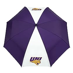 Patented Wind-Release System features patented Windlock System, allowing wind to escape between upper and lower canopies, minimizing inversion during storms and high winds Features a patented Safety-Runner, custom molded Two-Color rubber handle, and durable 190T nylon construction The White frame brightens up the underside of the umbrella and eye-catching printed collegiate trademarks embellish the outside of the umbrella