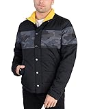 - Full Zip with Button Flap and Snap Pockets Adjustable Cuffs . Camo Pattern Band Across Chest and Upper Arms