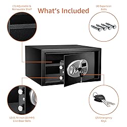 - Amazon Basics Steel Security Safe with Programmable Electronic Keypad - Secure Cash, Jewelry, ID Documents - Black, 1 Cubic Feet, 16.93 x 14.57 x 9.06 Inches