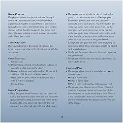 2 players, for ages 10 and up, created by Dirk Henna In this strategic game, one player commands the house of York and the other, The house of Lancaster The players use their power cards to bring territories under their control, aiming to keep their territories as contiguous as possible They also deploy their heroic Knights to take over enemy territories and cause surprising upsets