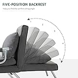 HOMCOM Single Person Folding 5 Position Convertible Sofa Bed Sleeper Chair Chaise Lounge Couch w/Pillow & Steel Frame, Dark Grey