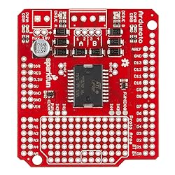 - This is a motor shield for Arduino that will control two DC motors. Based on the L298 H-bridge, the SparkFun Ardumoto can drive up to 2 amps per channel. The board takes its power from the same Vin line as the Arduino board, includes blue and yellow LEDs to indicate active direction, and all driver lines are diode protected from back EMF. The new version of this shield allows for either 3.3 or 5v logic, a separate and more robust VIN connection, and the PWM input has moved to pin 3. Control for motor attached to OUT1/2 is connected to digital line 12 (direction A) and digital line 3 (PWM A). Control for motor attached to OUT3/4 is connected to digital line 13 (direction B) and digital line 11 (PWM B). Compatible screw terminals and connectors are sold separately. They are not included in this SKU. Note: The VIN connection is tied directly to the VIN on the Arduino, so make sure to not apply power to both.