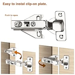 Face Frame Kitchen Cabinet Door Hinges. Satin Nickel Metal Full Overlay 105 degree clip on concealed hinge. Cup size:35mm*11.5mm, fit for door thickness:14-22mm. Full Overlay, 105 degree opening angel. Fit for American face frame cabinet. Mounting screws and plates are contained, perfect for the replacement of old cabinet hinges. Our kitchen cabinet hinges are high-quality and durable. They can be used in many occasions like kitchen, bedroom or other face frame cabinets.