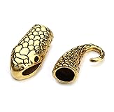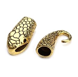 Linsoir Beads 10 Sets Snake Head Hook Clasp End Cap Hook for Leather Cord Antique Golden Plated