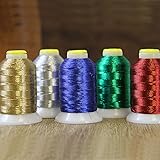 ✅ Metallic thread for machine embroidery, decorative stitches, and many other applications. Has beautiful luster and shine and is perfect for all kinds of decorative stitching. ✅ Each spool is 500 meter (550 yds). No duplicate colors. Made from extra strong polyester core and coated with metal foil. Resists fraying and has excellent elasticity and tenacity. ✅ Metallic threads are great to combine with our regular polyester threads too. Creates a dynamic effect for your projects. Machine or hand washing will work with your finished designs. ✅ 40 weight thread with removable thread holder on each spool. Makes for neat and easy storage. 25 colors avaialble ✅ We recommend use with a 14/90 metallic, topstitch or embroidery needle for best results.