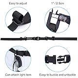 Keeps shoulder straps of your backpack securely in place, and gives your hands free. Made of 1" wide Webbing, durable to use. Quick Release Buckle, easy to buckle and unbuckle. D rings for attaching some light stuff. Adjustable length from 8" - 22", compatible with most sizes.