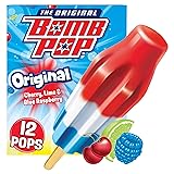 One 12 pack of individually-wrapped Bomb Pop Original Ice Pops Each refreshing red, white and blue freezer pop includes cherry, lime and blue raspberry flavors all on one stick The sweet treat with the iconic colors, shape and soft bite texture tweens know and love Enjoy Bomb Pops as a pick-me-up or reward for a job well done A refreshing frozen treat on a hot day or as a frozen dessert after dinner An easy to share sweet treat that makes it easy to stock up your freezer or grab on-the-go Only 40 calories per ice pop for guilt-free indulgence anytime