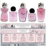CHARRIER PARFUMS, french perfumer since 1888 A gift set of 5 miniature bottles of Eaux de Parfum - Total contains : 49.7 ml - 1.68 FL.Oz A fragrance for every moment, a fragrance for every desire. Lovely French, Mon Otage, Viva Paris, Magic Rose, Mademoiselle France Made in Vallauris near Grasse, France, world capital of perfumery Please see Heart and Base Note in Product description below
