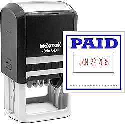 MaxMark Q43 (Large Size) Date Stamp with Paid Self Inking Stamp - 2 Color Blue/Red Ink