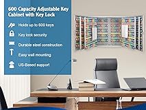 ADJUSTABLE KEY CABINET - Secure wall mount lock box with adjustable racks for flexible key storage. Keep keys organized and easily accessible. 🌈✨ KEY LOCK - Organize and secure up to 600 keys with ease using our key cabinet equipped with a reliable key lock for added protection. 🗝️🔒 COLORFUL KEY TAGS - Colorful key tags enable quick identification, no more fumbling for the right key. Stay organized! 🏷️🔍 KEY MANAGEMENT - Efficiently manage and secure keys for various settings like homes, offices, and businesses with the convenience and reliability of a key cabinet. 📝📋 WALL MOUNT - Comes with mounting hardware for easy installation. Keep keys safe and accessible, hassle-free. 🛠️💡