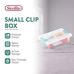 - Every office has one drawer of miscellaneous small items you have no idea where to put. Don't sweat the small stuff because you can organize them with this 6-pack of the Sterilite Small Clip Box Clear Storage Tote Container with Latching Lid. The Small Clip Box is a great solution for storing and organizing smaller items in the home and office. The clear base and lid allow contents to be easily identified from any angle, and the tight-clasping latches ensure that the lid remains secure to the base. With recessed lids, these boxes stack together to save vertical storage space and maximize your efficiency. With versatility for use in your office for supplies or in your home for organization, these storage containers provide sturdy, long-lasting use, while blocking out bugs, dust, and dirt. Utilize in the craft room, playroom, closet, or kitchen to cut down on clutter and help you find what you're looking for, every time. Organize your junk drawer and find your important items quickly with this 6-pack of the Sterilite Small Clip Box Clear Storage Tote Container with Latching Lid.
