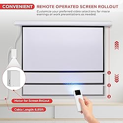 MOTORIZED SCREEN CONTROL: This Electric Automatic Projection Display Screen by Pyle is equipped with electronic motor that automatically rolls the screen. Controlled via the wired control box or the included wireless battery powered remote control. 72" PROJECTION SCREEN: This professional waterproof 72 inch 1.3 gain triple layer full projection screen provides you with a wide viewing area and it is designed for universal projection in any room which is perfect for use in home, office or classroom. WIDESCREEN ASPECT RATIO: The projector screen features a 4:3 viewing format and is compatible with 16:9 aspect ratio, same aspect ratio as an HD TV and it is suitable for most movie formats which is ideal for home theater cinema or video / film showing MATTE SCREEN SURFACE: The retractable matte white screen material and 4 side black border frame creates impeccable color balance to project realistic picture. It also delivers ultra-wide off-axis viewing which makes every seat in the house the best one. EASY TO ASSEMBLE: This wall mounted, compact, portable and lightweight screen feature convenient hooks for easy wall / ceiling mounting. It also has an aluminum protector case to protect the screen from damages when not in use or during travel.