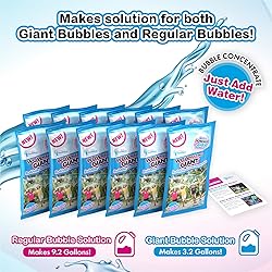 Product is Made in the USA! The WOWmazing Giant Bubble Concentrate is the only bubble line made in the USA (ingredients, packaging, assembly)! We focus on quality and you can trust you're getting a premium, reliable, and superior product. Unimaginably Giant Bubbles: Includes new innovative WOWmazing Bubble Concentrate pouch that will make hundreds of giant, high-flying, and long-lasting bubbles. Passers-by will be sure to say "WOW-Amazing"! 12 Pack = Hours of Fun: The set includes 12 pouches of bubble refill. It will make over 12 quarts of Giant bubbles or over 36 quarts (9.2 Gallons) of regular bubble solution. Just Add Water! Say goodbye to bulky, leaking plastic bottles… we use environmentally friendly pouches that consume less space and less likely to leak. The pouches will fit in your bag and once you are ready to use it, just add water! Outdoor Family Fun: A wonderful birthday activity or gift for boys & girls of all ages, parents can let kids play with the large bubble wands in the backyard, park, or beach. Teachers can use it for science classes at school.
