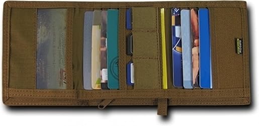 - Our Tri-Fold Tactical Wallet it's a must to have EDC mid-sized tactical wallet, features 18 compartments that holds everything you may need but yet fits in back pockets. the rugged tactical specs represents an innovation in our wallet design.