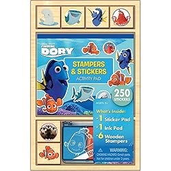 6 fun-sized stampers featuring your favorite Finding Dory characters 250 stickers to decorate with Wooden storage case is great for organizing and traveling Officially licensed product Ideal for ages 3 and up