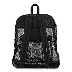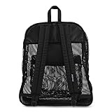 Mochila de malla Jansport La mochila de malla tiene un diseño transparente único que la hace destacar de la mochila normal. ¡Combinarlo con tus atuendos es todo lo que necesitas para completar un estilo sofisticado! Nuestra bolsa tiene una construcción duradera y liviana con un compartimento principal grande, un bolsillo utilitario frontal, un bolsillo interno para colgar y un asa de transporte web. Muy versátil, es ideal para la escuela, los viajes, el trabajo o las salidas a la playa y es el regalo funcional perfecto para niños y adultos. Esta mochila de viaje mide 17 «x 13" x 6.5».