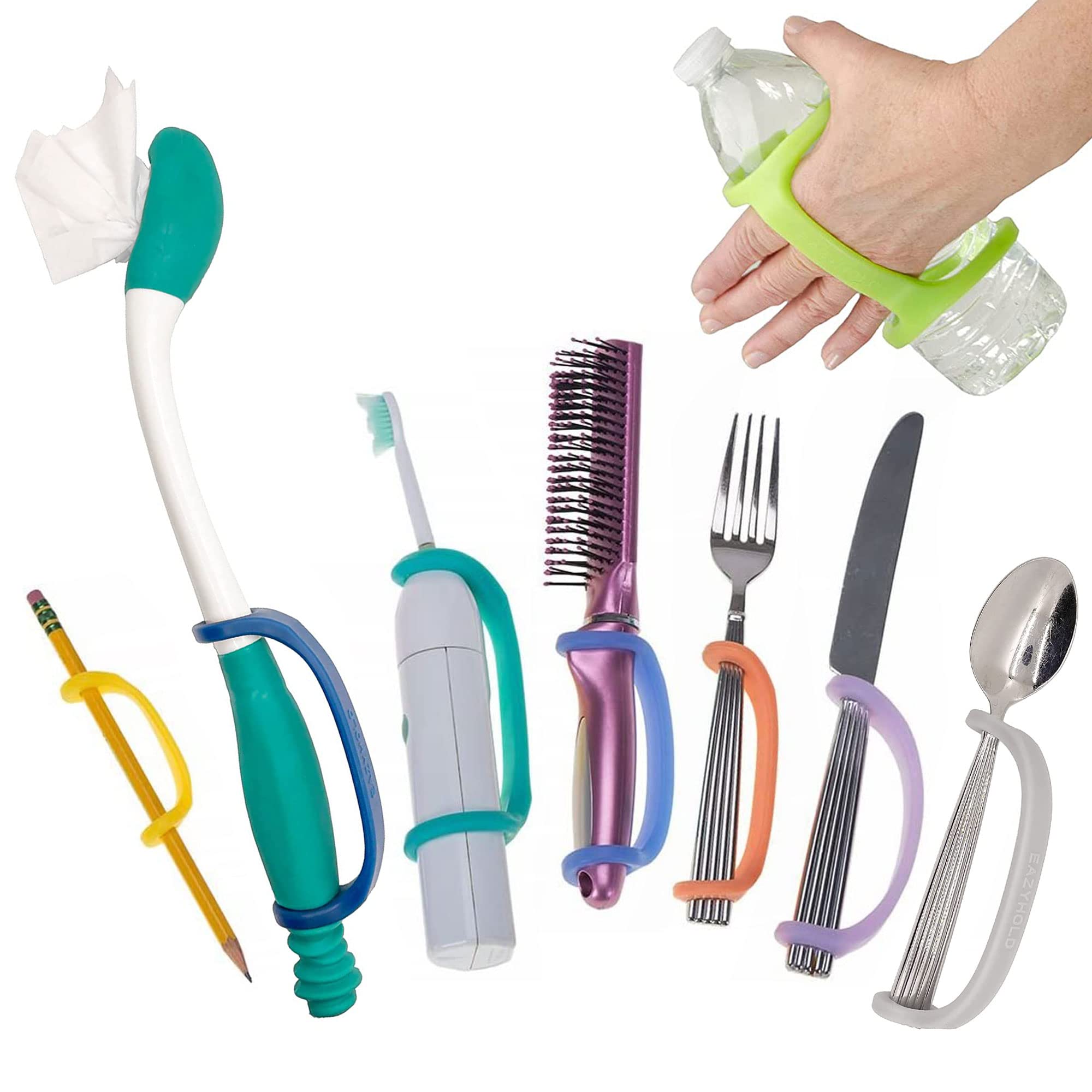 - Do you or a loved one have difficulty holding onto objects? Here's how our Blue EazyHold can help you to get a reliable grip on all the items you use every day for eating, grooming, work, school, and playtime. For children and adult hands and limbs, EaZyHold ergonomic design enables those with conditions such as cerebral palsy, arthritis, limb differences, tremors, spinal cord injuries, and motor delays to easily hold and control objects of daily living. EazyHold is made from 100% silicone, dish-washable, making them perfect for use in schools, therapy centers, in care facilities and at home. Use this Medium sized Blue EazyHold with eating utensils, markers, electric toothbrushes, jump ropes, bicycles, and more. EazyHold increases independence, enables confidence, and allows for participation with friends and family for a happier, more fulfilled life.