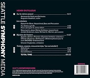 - This new release is the third volume in the Seattle Symphony Orchestras Grammy Award-winning Dutilleux cycle. Especially notable on this installment, is the inclusion of a live performance of Dutilleuxs masterpiece Timbres, espace, mouvement. German-born violinist Augustin Hadelich is featured on this recording of Sur le meme accord. He performs on the 1723 Kiesewetter Stradivarius violin, provided by the Stradivari Society of Chicago. *** GRAMMY WINNER, 59TH AWARDS: Best Surround Sound Album ***